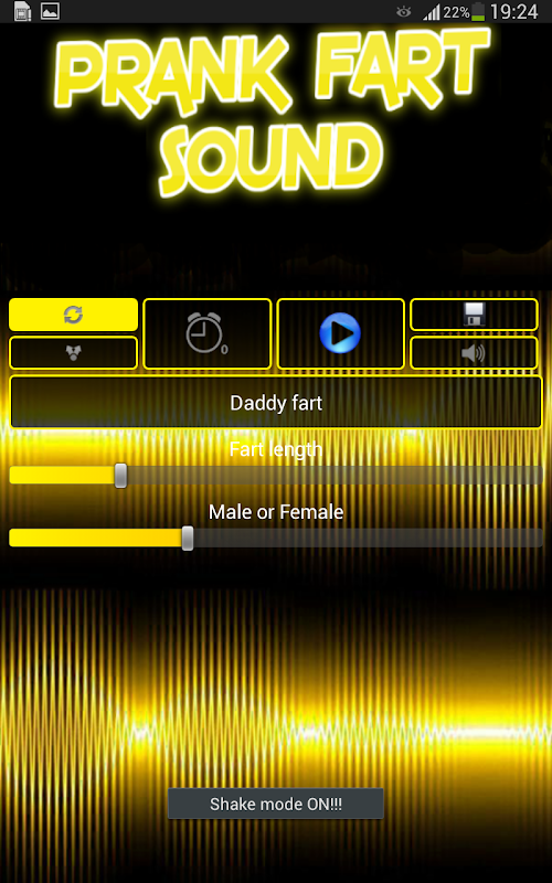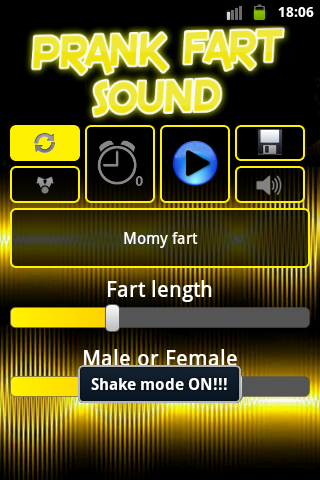 ★ Shake and fart: Press on the shake icon and move the phone. Your mobile phone will become a farting phone.