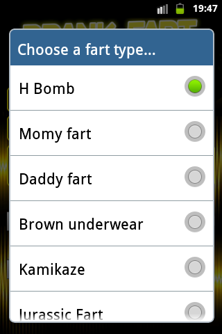 ★ Classic way: Press on the fart button to simulate different kind of farts.