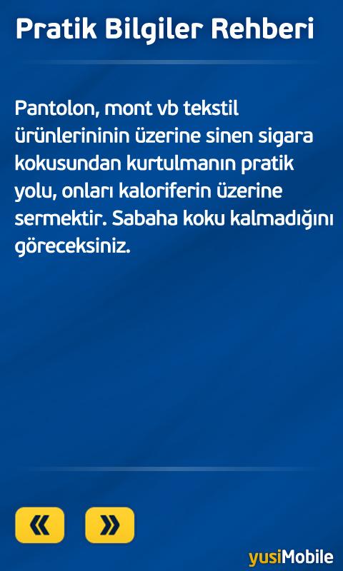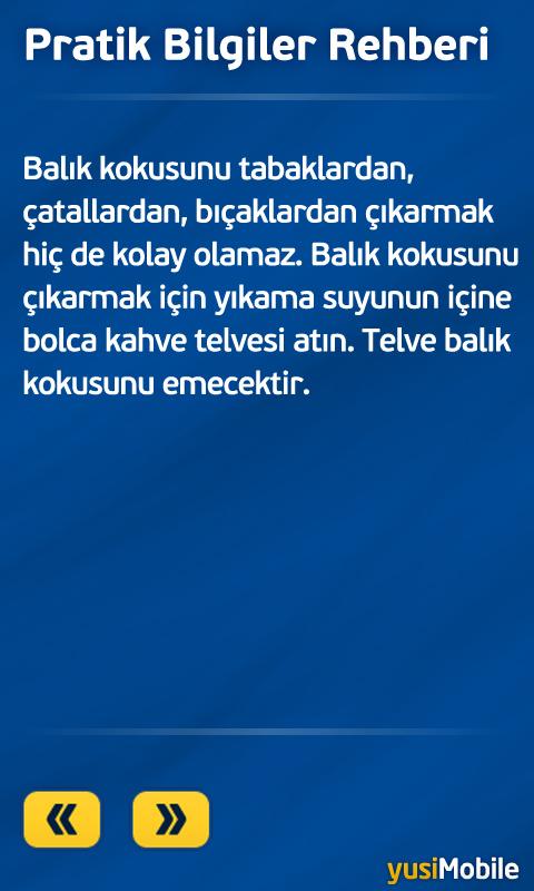 Bu uygulalamızda günlük yaşamınızda kullanabileceğiniz pratik ilginç bilgileri ve gerçekleri biraraya topladık. Örneğin yemek takımınızda balık kokusunu nasıl çıkarırsınız? Yumurta kabuklarından ne gibi yerlerde faydalanırsınız? Sinmiş sigara kokusunu giysilerinizden nasıl çıkartırsınız? Bitkilerinizi evdeki basit gıdalarla nasıl dahada canlandırırsınız? gibi birçok bilgiyi okuyabilirsiniz.