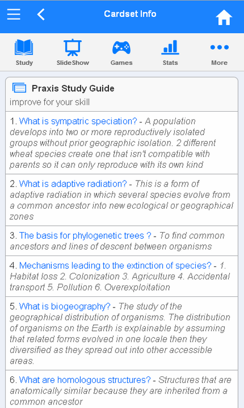 PRAXIS Flashcards app includes 1600 premade flashcards from 3 categories which cover all aspects of the PRAXIS exam: