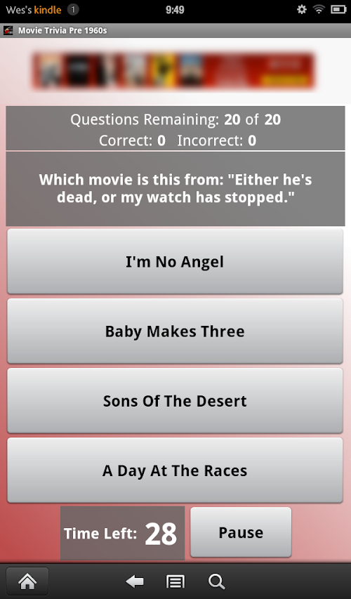 Pre-1960s Movie trivia quiz game will test your knowledge of the golden oldies of feature films - those created before the 1960s. Featured actors include Humphrey Bogart, Marlon Brando, Judy Garland, Lauren Bacall, Marilyn Monroe, Charlton Heston, Jimmy Stewart, Errol Flynn, Charlie Chaplin, and many more.