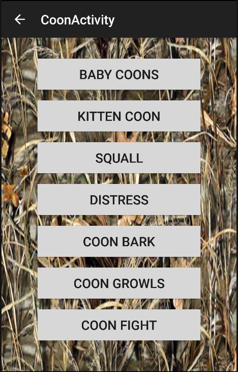 Available calls in this application have been tested and proven on many hunts by seasoned coyote and raccoon calling experts. You can mix calls by playing several calls at the same time or pick and choose your call for the situation with a simple button push.