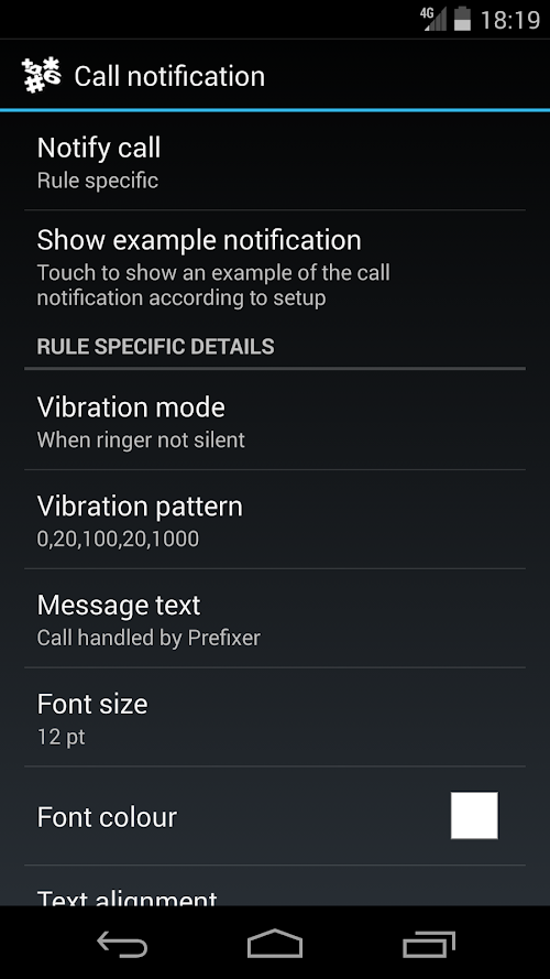 ✓ Personal call notifications with your own configurable vibration patterns, text, font sizes, alignment, colors etc.
