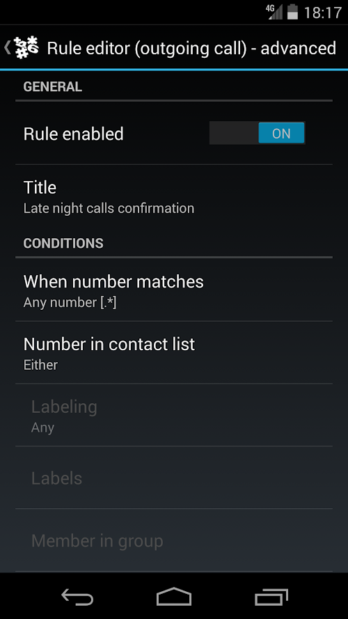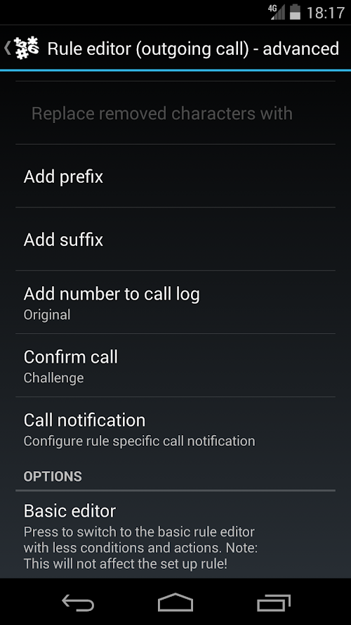 A configurable (rule based) multi-purpose app that will prefix, suffix and/or replace numbers in your calls, provide customizable call notifications, call confirmations, auto handle calls, whitelist/blacklist numbers and more! All this is made on-the-fly based on your own set up rules. Just mix and match conditions and actions as you like!