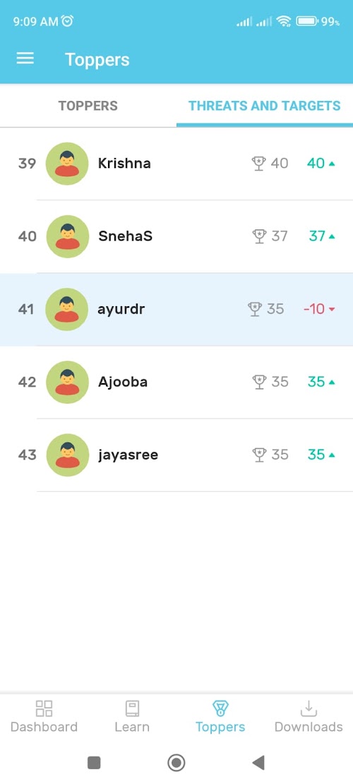 • Rank based on each test performance will be created and can be compared with the topper among App users.