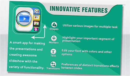 A perfect app for presentation making even if you're not in work place. Everybody hate to make office documents so this is the time for creating exciting slideshow of official docs and pics together but be sure it’s not a regular collage creator. Upgraded markers and box enhances the utilization of the app where we simply need to swap the box of different shapes and magical markers. It’s a kind of presentation studio which is identical to the powerpoint or we may say this it’s a mobile version of power point.