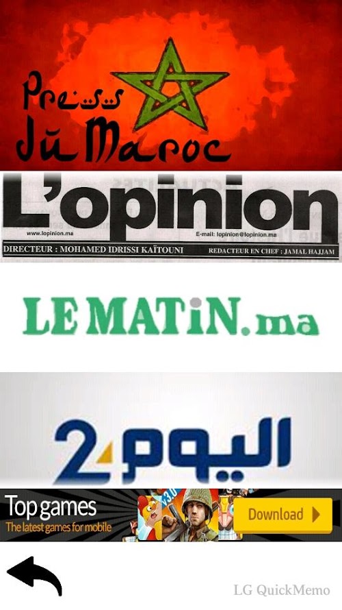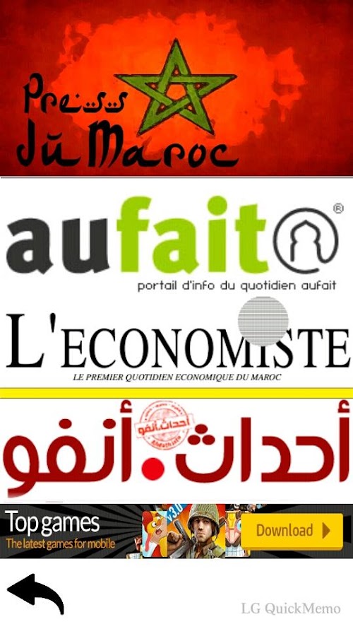 Les principaux journaux et les médias au Maroc . Dans cette application, vous pouvez apprendre toutes les nouvelles du Maroc .