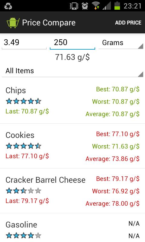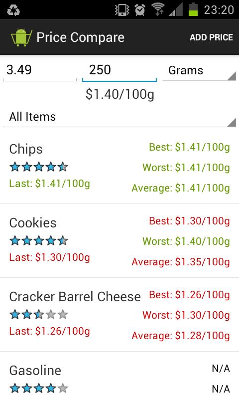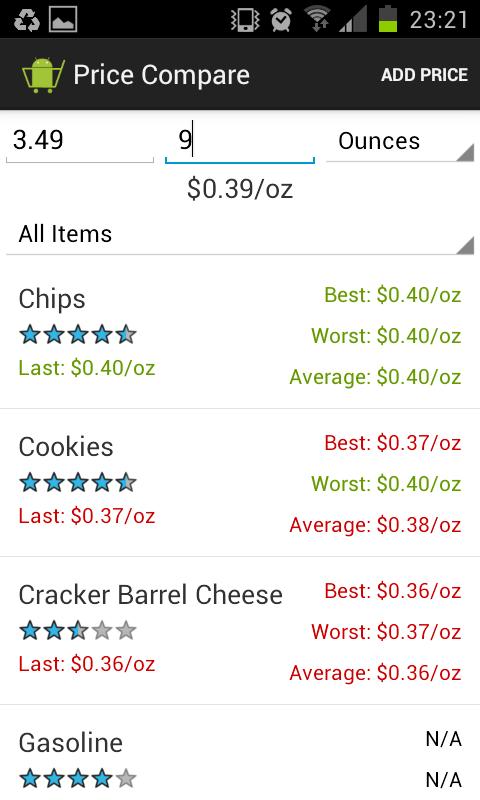 See https://play.google.com/store/apps/details?id=com.cryptopone.pricecompare for the free version and free features