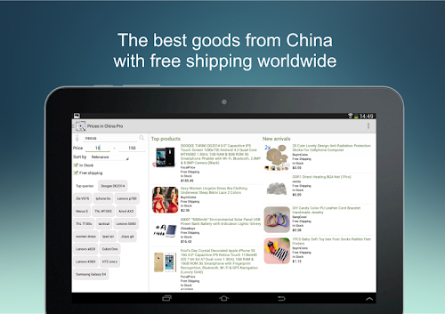 This application will help you to find and order independently goods directly in the Internet shops of China without any extra charges and agent services. Save up means buying goods on sales, use discount coupons and take part in group purchases. There is no doubt it is much more convenient to look for and compare goods prices in tens of Chinese shops at once.