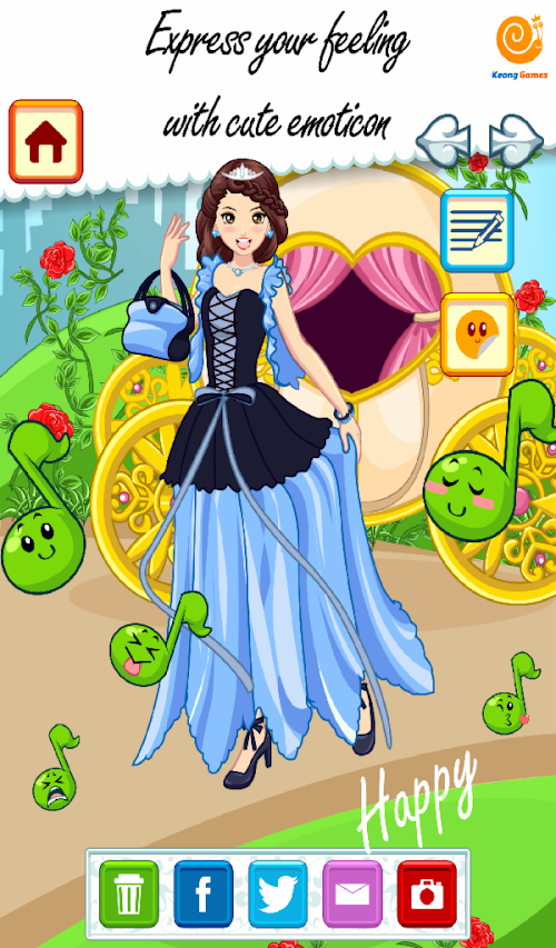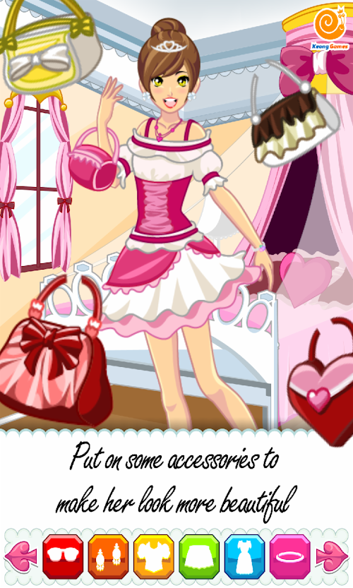 The next step is we go to dress up section. Mix and match your dress and skirt. Make her gorgeous. Don’t forget to add some accessories such as bag, bracelet, necklace, etc. Once you finished with it, then Princess Ayya is ready to go the party. Isn’t she look pretty?