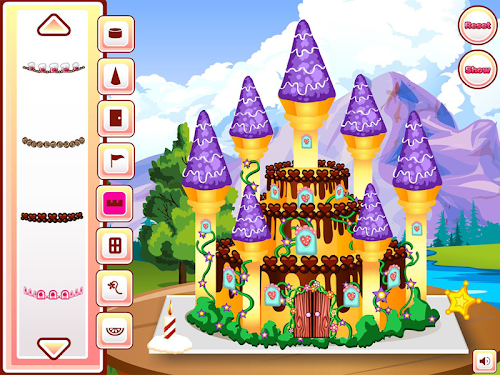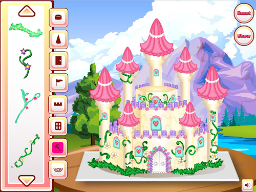Ever wanted to be a part of royalty? Well now you can with this Princess Castle Cake decorating game. Here you can have plenty of fun with decorating your very own princess castle cake. Let your imagination run wild as you choose your own cake color, tower tops, front door design, cake layer lines, window types, grass and vine icing design, as well as decorations and accessories. Watch as your princess castle cake transforms in front of you as you mix and match the different decorations until your have a beautifully sculptured castle that is fit for any king or queen with this fun Princess Castle Cake decorating game.