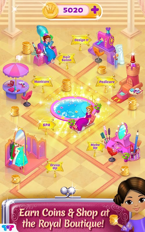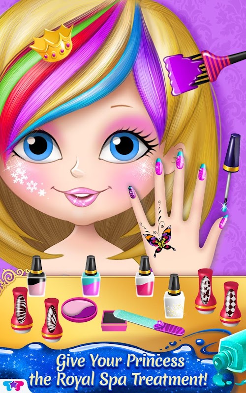 Head to the spa to continue pampering your princess! Check out the 4 adorable spa themes, each with different tools and spa surprises! You can also style and highlight your princess' hair! Talk about the royal treatment!