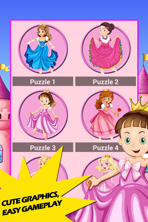 Castles, princesses, knights in shining armour and a King. They are all here, as puzzle figures, memory game images and a fun block type game. Also featuring is our awesome Tiara Cam, which lets you take a photo of yourself, or your friend, with a tiara on your head.