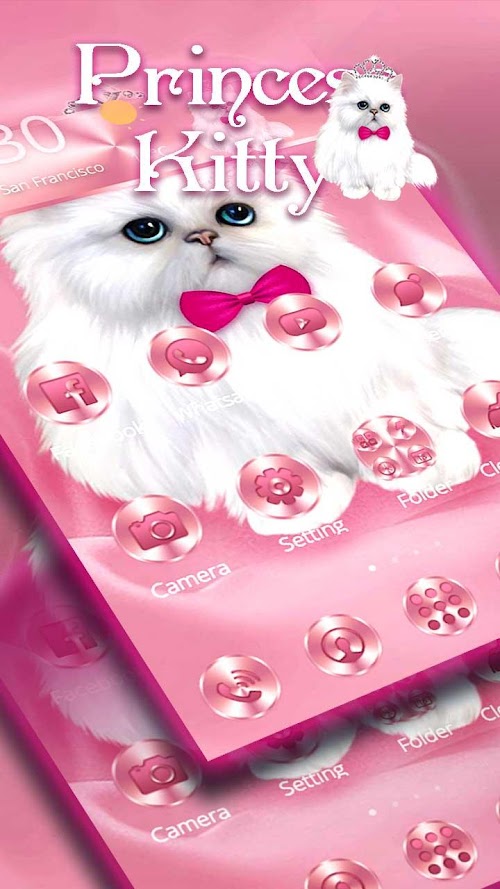 This cute Princess Kitty Theme is a brand new free theme . It is a cute girl style theme with 3D Kitty weather widget and clock widget .In particularly, the Princess Kitty is a free themes designed for Launcher users specially. It has simple rose gold icon pack for people daily popular apps including dozens of unified icons and artistic wallpapers which can personalize your device easily. This white cute kitty theme is specially designed for cute girl who love pink silk. And regardless of your phone's model, whether it's Samsung or Huawei, This princess cute kitty theme is designed to let you enjoy a faster and smoother mobile operating experience.