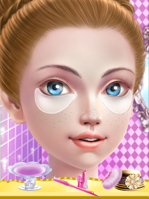 First make spa salon with the princess, she got black eye and her mental condition is so bad. Lots of freckle and we have to help her be a bright princess again.