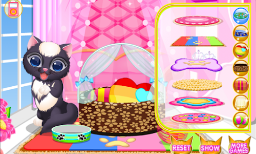 All princesses spoil their animal friends and they surely deserve all the best things in the world. At the princess pet shop you'll find exquisite things so choose your favorite ones to design the most beautiful pet bed. When you're done cook a royal meal for her and she'll be so happy!