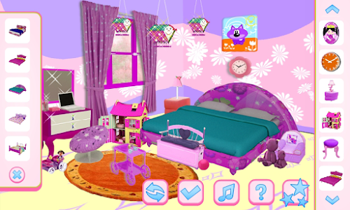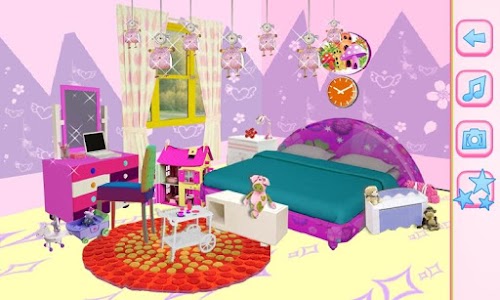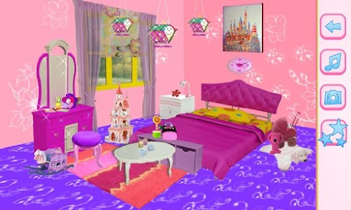 Any little girl would love to have a princess themed bedroom. Create the fairytale land of a princess chamber using these realistic pieces of furniture and accessories. Try different combinations using these great pastel colors to get the design of your dreams. Now every little girl would be delighted to sleep in this wonderful bedroom. By playing this fun princess room decoration game you'll surely have a great time! Many room decoration items to choose from in each category - furniture and wallpaper/carpet icons and style this room anyway you want. Use the random button or shake your device for different room decoration - at the end use the save button to save your design.