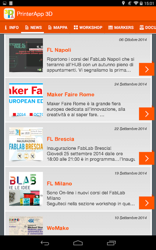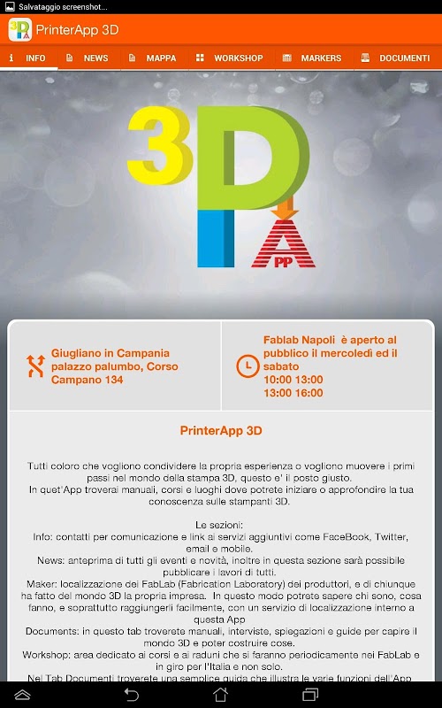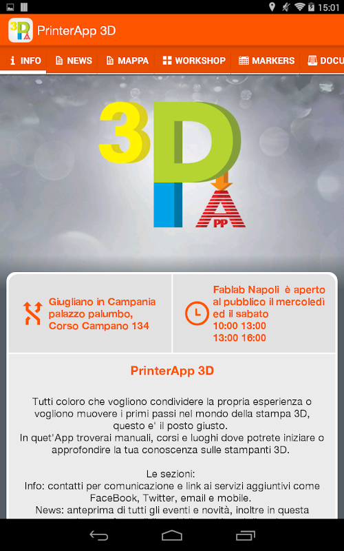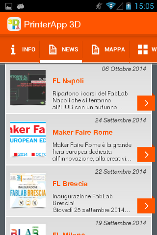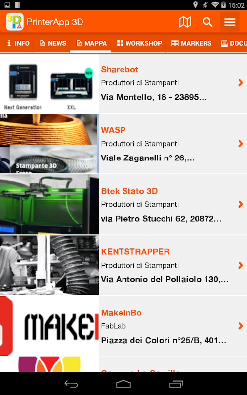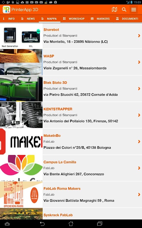 - Geolocalizione: All FabLab Italy, makerspace and manufacturers of products for 3D, are easily accessible with a convenient map.