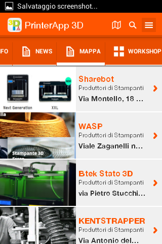 - Geolocalizione: All FabLab Italy, makerspace and manufacturers of products for 3D, are easily accessible with a convenient map.