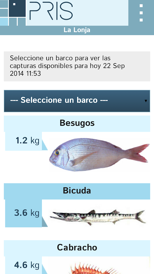 The PRIS Tenerife allows fishermen in the area of the PRIS advertise free screenshots of each day even before reaching port.