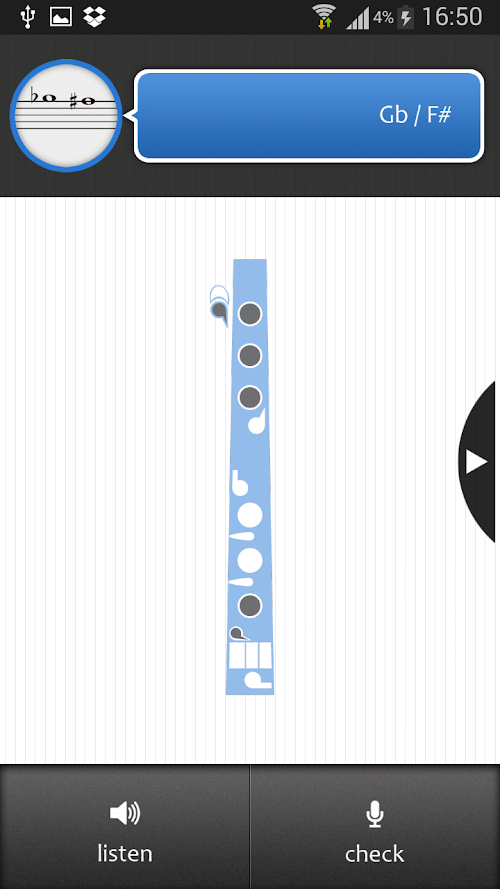 With a range from low B3 to G7, including quartertones, this app is the most comprehensive flute fingering application on the android market.