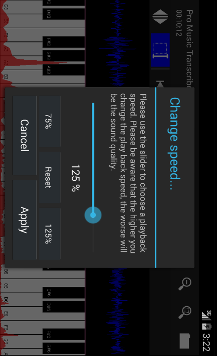 Pro Music Transcribe helps you creating a transcription of songs or other music pieces. It comes with features like playback speed change, pitch change, frequency analyzis and a built in piano which helps you finding the correct tones. This tool is ideal for people who want to transcribe songs or create jazz transcriptions.