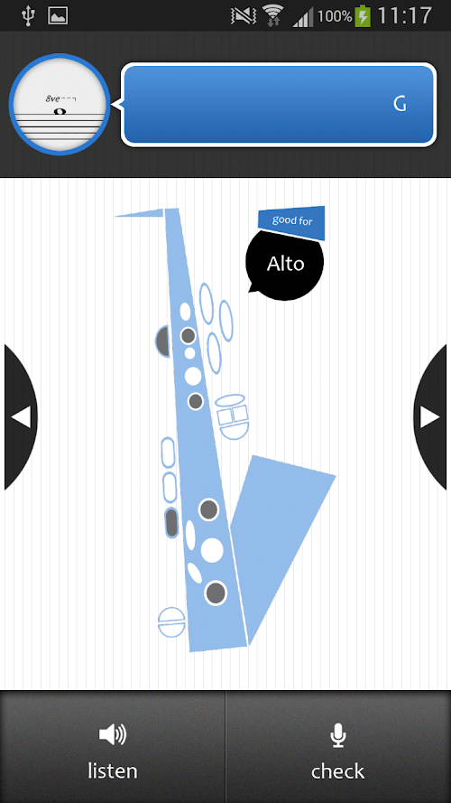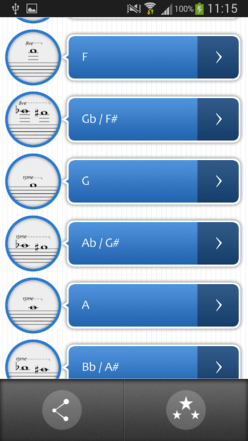 As well as easy to understand graphics, this application offers the ability to both check the note you are playing with an in-built tuner, and listen to an example of the note!
