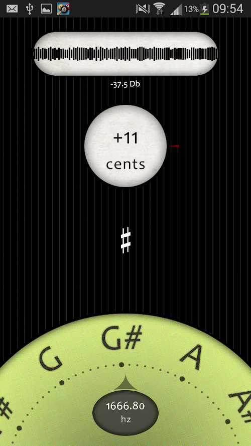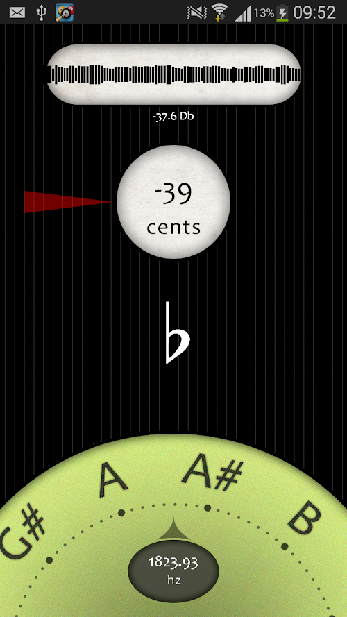 Pro Tune is an extremely accurate (to 1 cent) acoustic tuner for the android platform with an easy to understand dual display.