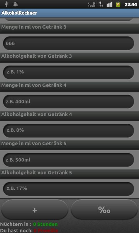 Eine sehr simple App, um den Blutalkoholgehalt in Promille auszurechnen.