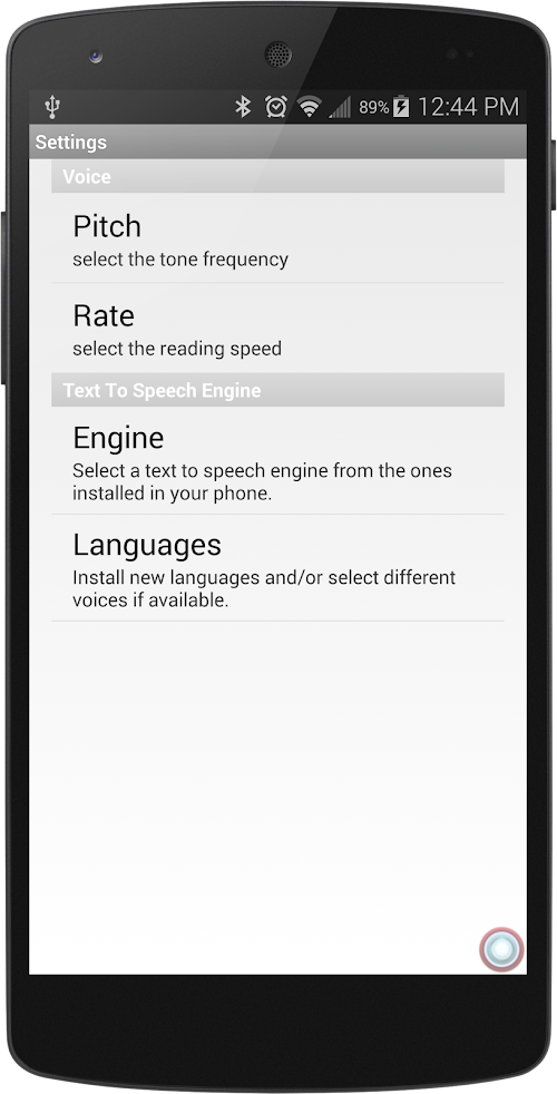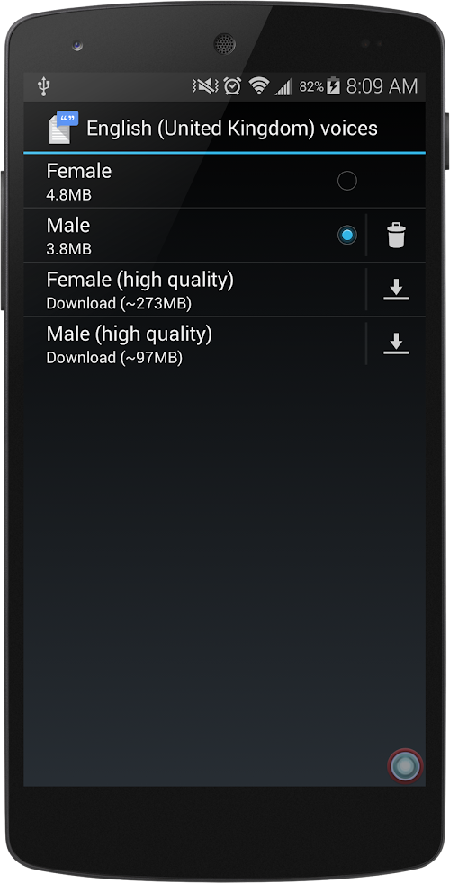 - Tex to speech engine selection: higher voice quality for some languages, and gender (male or female)