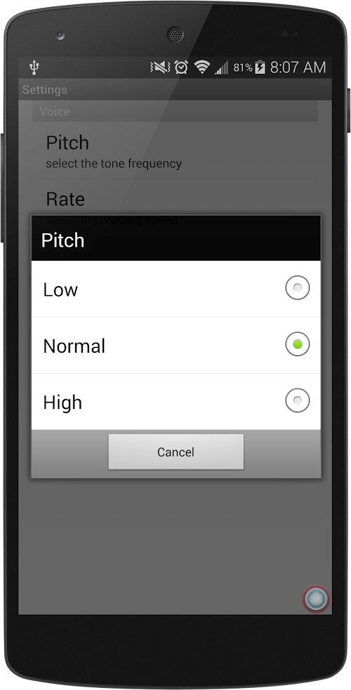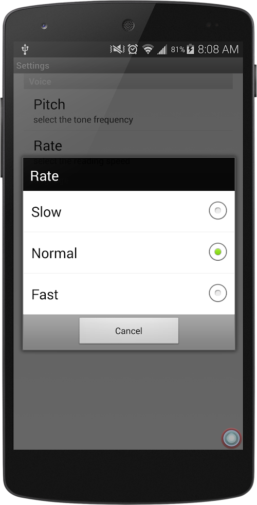 - Voice rate/speed setting (note: setting might not available for all voices)