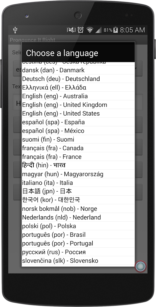 Type a word or sentence and let this app pronounce it, use it to listen and try to mimic.