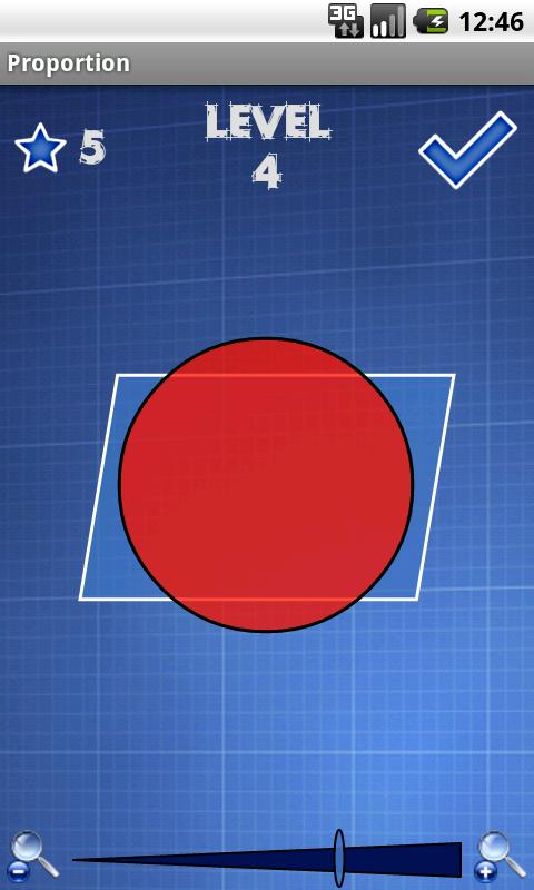 The objective of this game is to express the area of a given shape through the area of another shape. For example, given is a square, and you have to adjust the size of a circle so that the circle has the same area as the square.
