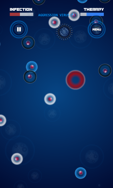 In this game you will be faced with the prototype virus named Pandora. Your task is to cure all the blue cells, turning them into white. But you will encounter a dangerous virus which infects the white cells. In each new level the number of dangerous virus increases, and it will be very difficult to cope with it. But the struggle must go on.
