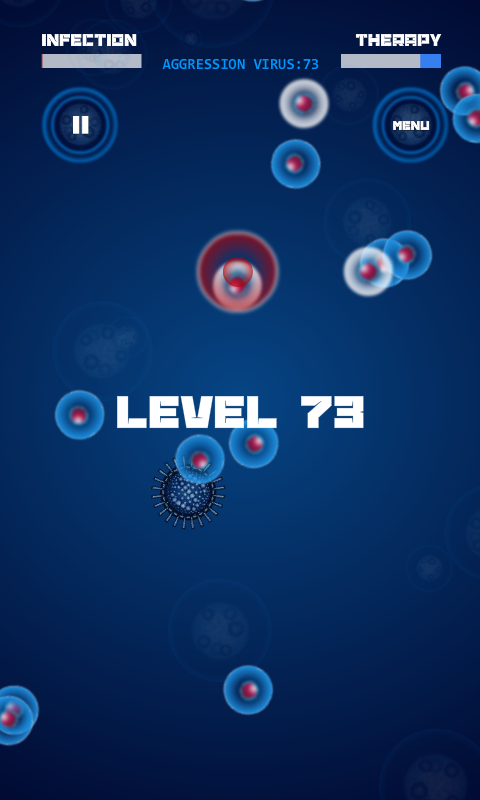 In this game you will be faced with the prototype virus named Pandora. Your task is to cure all the blue cells, turning them into white. But you will encounter a dangerous virus which infects the white cells. In each new level the number of dangerous virus increases, and it will be very difficult to cope with it. But the struggle must go on.