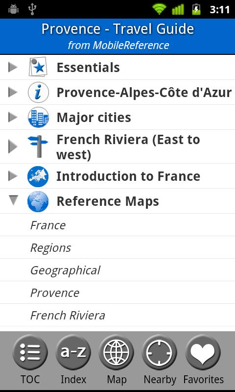 MobileReference Travel Guides provide detailed, practical information about attractions, landmarks, transportation, cultural venues, dining, lodging, history and much more. They are indexed alphabetically and by category, making it easier to access individual articles. Attractions can be viewed on an offline GPS map along with your current location so that you can easily find attractions near you as you explore the city.