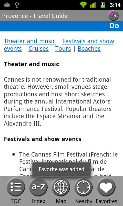 This fully-functional guide is absolutely free. The full version (only $4.99) adds Text-To-Speech and expands articles with more information about attractions, history, culture, itineraries, phrasebooks and more. Listen to complete articles on the go with Text-To-Speech: double-tap on a word to start Text-To-Speech from the selected word or select Menu > Start Text-To-Speech.