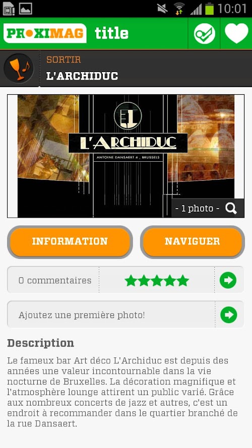 Your smartphone introduces you to address your area on a map or a list. You can narrow the results using the filters or by using the "search". You are in a strange land? Route allows you to find the right path.
