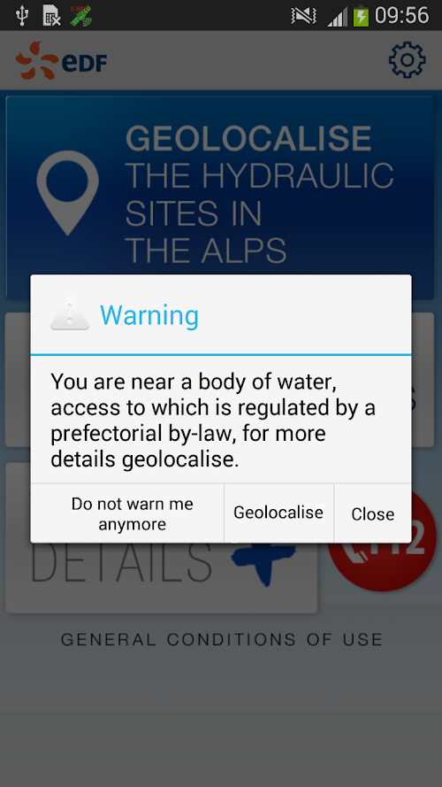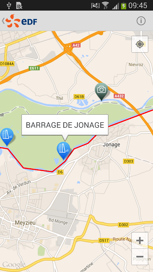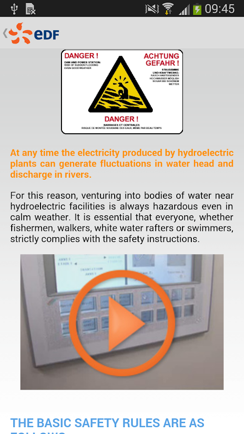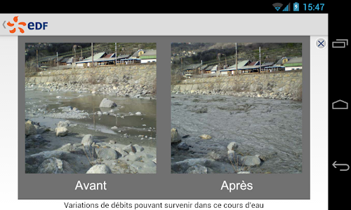 In addition to the information systems (panels, hydro-guides, school conferences, press reports) already implemented by EDF to make the public more aware of such risks, EDF has developed this application designed to: