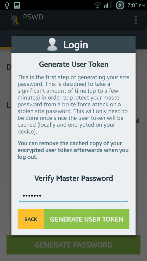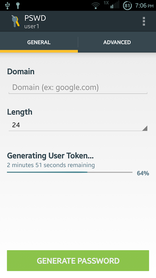 2) The second step hashes the cached user token, master password and domain (this step takes a much shorter amount of time). The hash result is then formatted to meet the final password parameters.