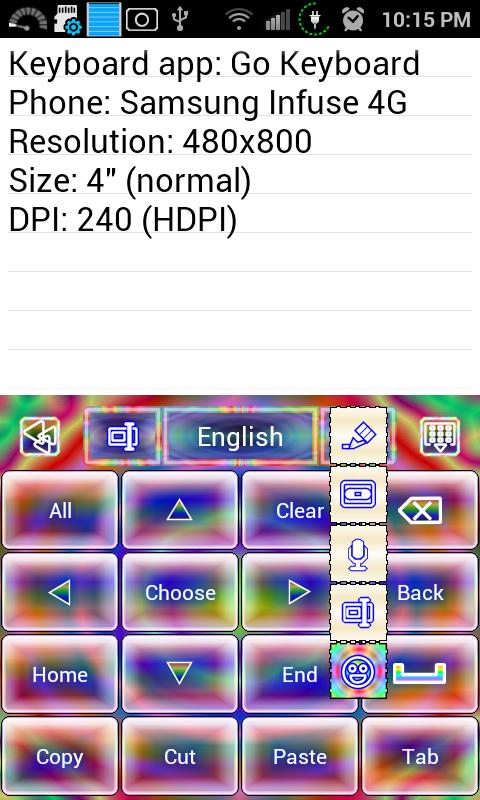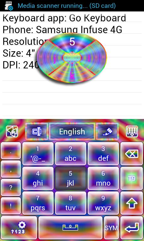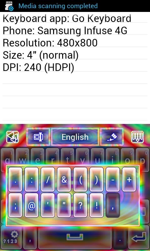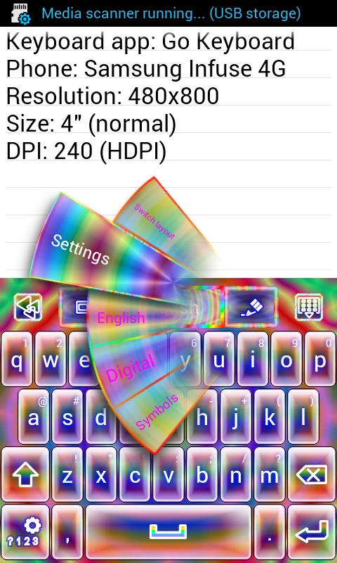 The skin also includes a test area for you to type in to test the skin (after setting up your keyboard app to use the skin). You can long press the test area to select different input methods to see how the skin looks using the compatible keyboard apps you have installed on your Android.