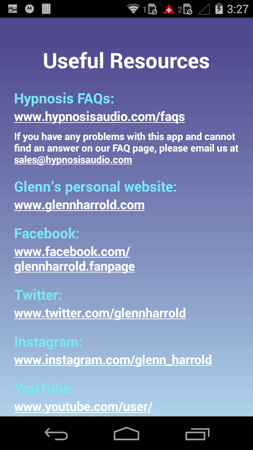 • Glenn’s Harrold’s calming voice and highly acclaimed hypnosis techniques guiding you into a completely relaxed state of mind & body.