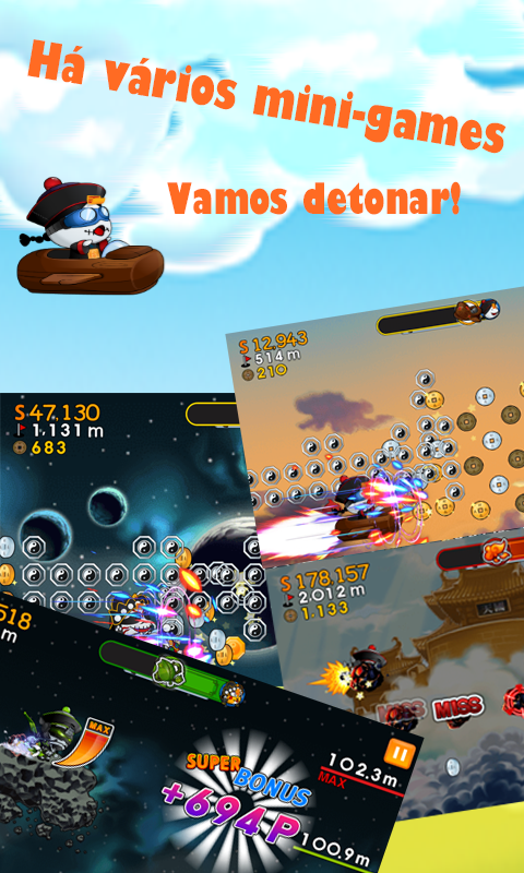 Ao longo da partida, você vai encontrar novos cenários, que são determinados pela altura que você alcança. Desafie-se e tente pular mais alto!