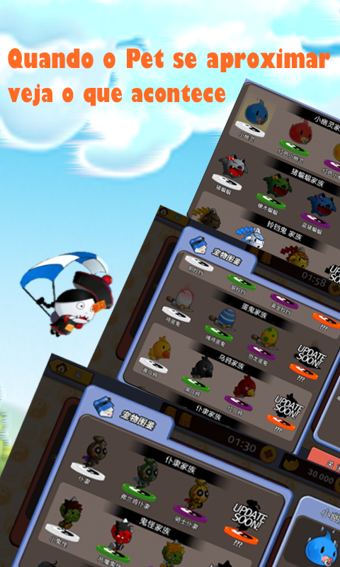 * Pets que podem ser evoluídos e combinados para te ajudar nessa aventura.