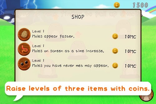・Touch a mole and move your finger up on the screen. A mole will fly to the enemy and attack!