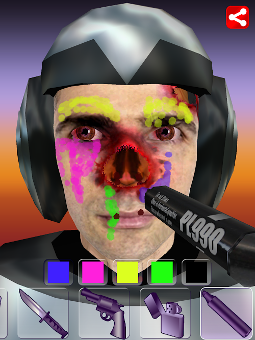 ★ Marker: Graphical fun on your victim’s face. Multiple colors. Unlimited ink.