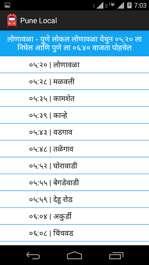 Pune Local app provides you daily Pune - Lonavala - Pune Local timetable.