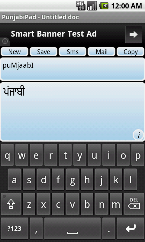 Please Note: The app purely depends on the unicode support of your device. As you start typing in english, if you dont see corresponding punjabi text being generated, then probably your device doesnt support unicode and sorry that PunjabiPad cannot be of any use to you.