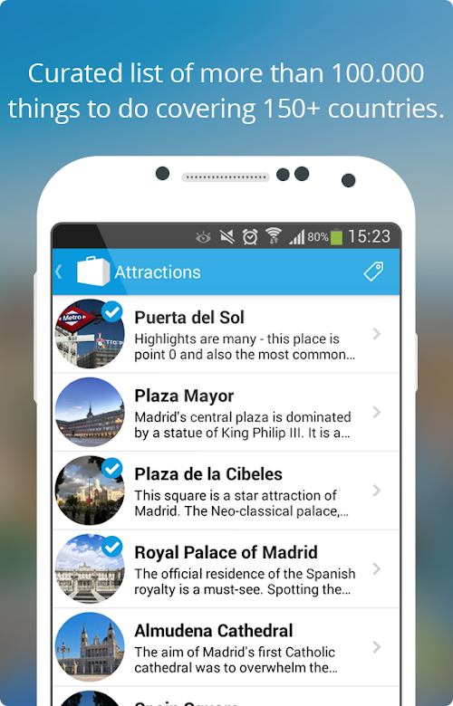 • Choose the best places to visit from our curated list of more than 100.000 attractions, covering 150+ countries - never miss out on the best sightseeing again