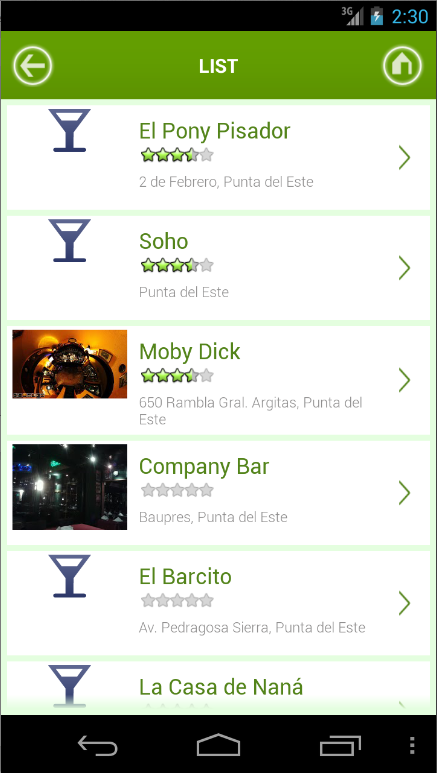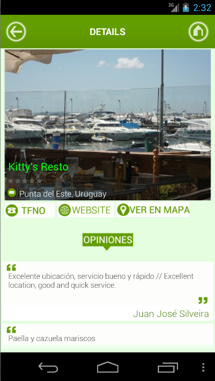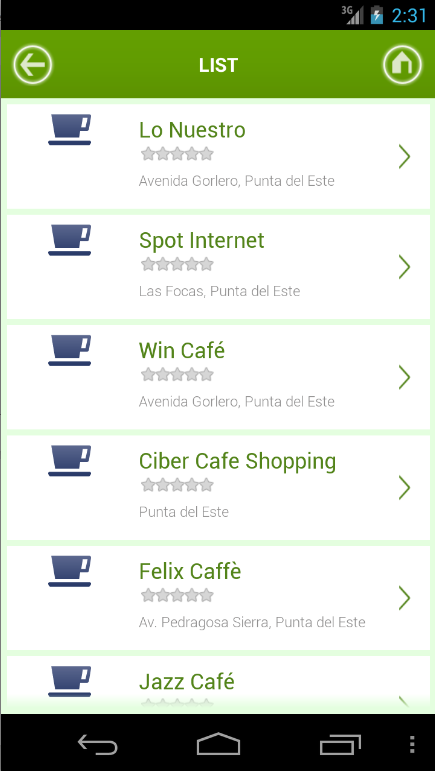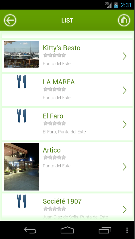 Buscador de Restaurant, Bares y Cafeterías en la ciudad de Punta del Este en Uruguay. También se puede utilizar para búsquedas en otras ciudades y países activando el dispositivo GPS.Search for Restaurant, Bars and Cafes in the city of Punta del Este in Uruguay. It also can be used to search other cities and countries GPS device activated.